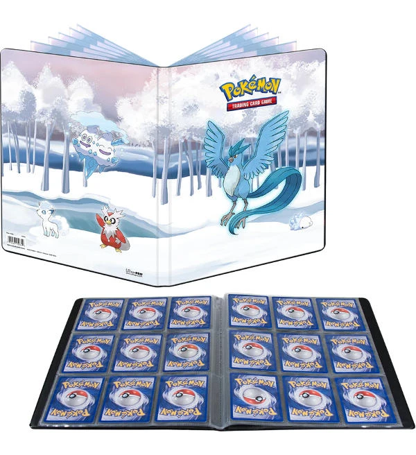 Pokemon Sammelmappe “Gallery Series Frosted Forest” im DIN A4 Format von Ultra Pro mit 10 Seiten für jeweils 9 Karten. Das 9-Pocket Portfolio bietet Platz für 90 Karten bei einseitiger bzw. 180 Karten bei beidseitiger Belegung.
