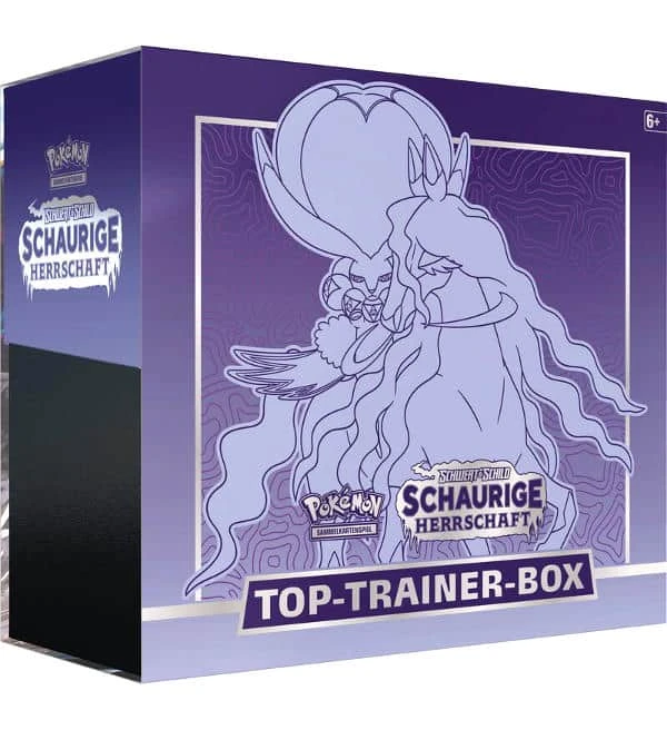 Die Pokémon Schwert & Schild 6 – Schaurige Herrschaft Top-Trainer-Box “Rappenreiter-Coronospa” mit folgendem Inhalt: