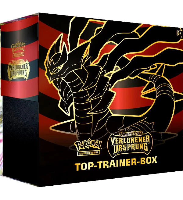 Die Top-Trainer-Box zum Erweiterungs-Set “Schwert & Schild 11 – Verlorener Ursprung” des Pokémon-Sammelkartenspiels mit folgendem Inhalt: