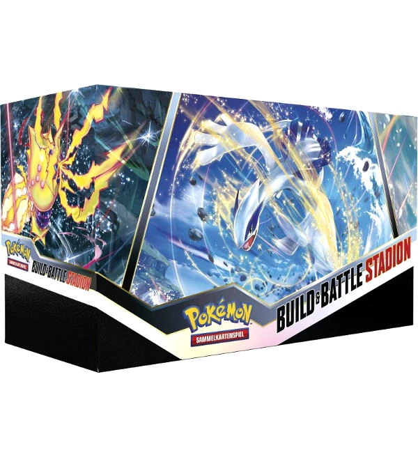 Die Build & Battle Stadion Box (Deutsch) zum Erweiterungs-Set “Schwert & Schild 12 – Silberne Sturmwinde” des Pokémon-Sammelkartenspiels mit folgendem Inhalt: