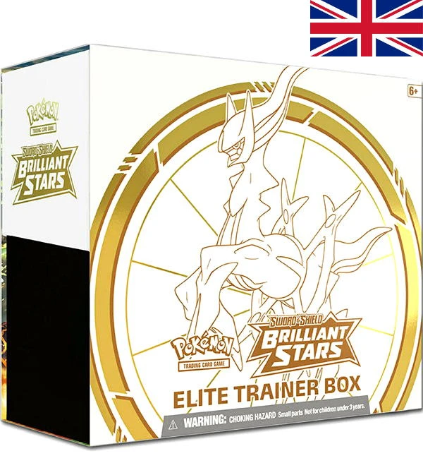 Die Elite Trainer Box (Englisch) zum Erweiterungs-Set “Sword & Shield 09 – Brilliant Stars” des Pokémon-Sammelkartenspiels mit folgendem Inhalt: