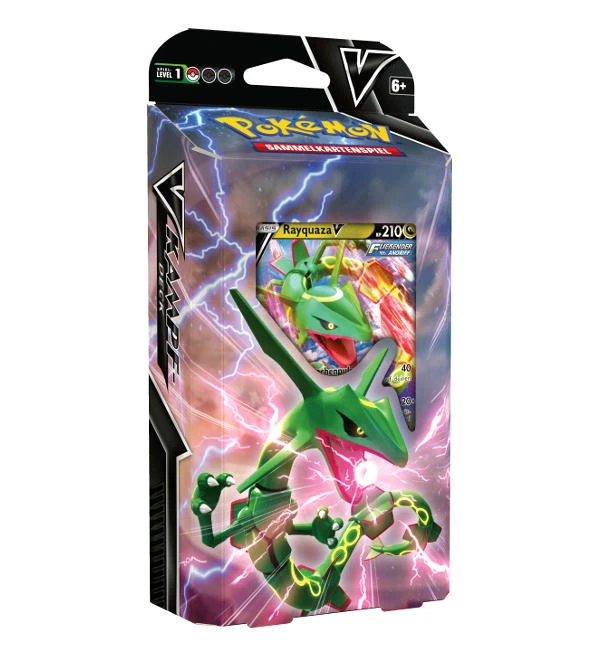 Mach dich bereit für einen monumentalen Zusammenstoß, wenn eines der größten und mächtigsten Legendären Pokémon sich einen Kopf-an-Kopf-Kampf gegen einen hitzigen Rivalen leistet, der dafür bekannt ist, seinem Ziel keine Gnade zu zeigen. Das spielbereite Deck-Bundle spielt Rayquaza-V gegen UHaFnir-V aus und enthält alles, was Spieler brauchen, um einen epischen Showdown vorzubereiten. Wähle entweder das Himmelhoch-Pokémon oder das Schallwellen-Pokémon, um dein Team im erbitterten Kampf gegen den Kontrahenten anzuführen. Tausche danach die Decks und schau, wie alles von der anderen Seite aussieht – schaffst du es, den Sieg mit beiden mächtigen Pokémon-V einzufahren?