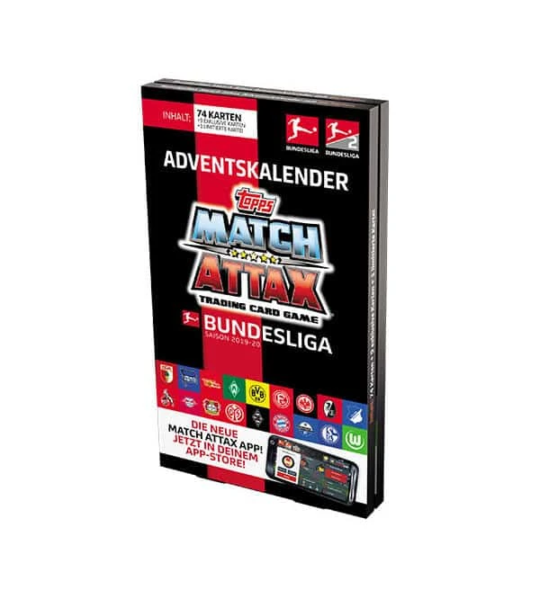 Der Topps Match Attax Adventskalender zur Trading Card Serie der Bundesliga Saison 2019/20 mit 84 Karten, davon 74 reguläre