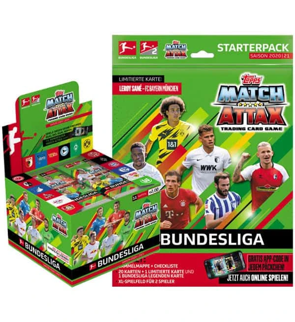 Starterpack + Display mit 36 Tüten zur Topps Bundesliga Match Attax 2020/21 Trading Card Serie mit folgendem Inhalt: