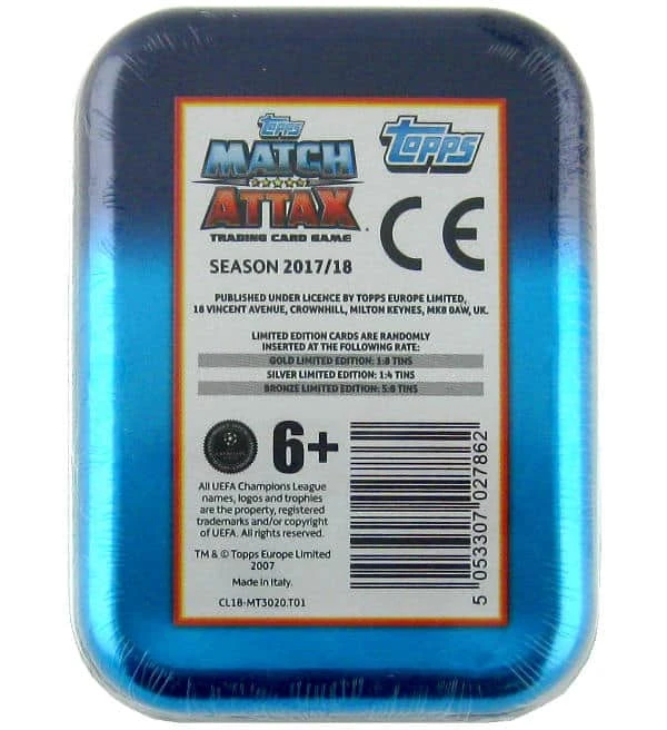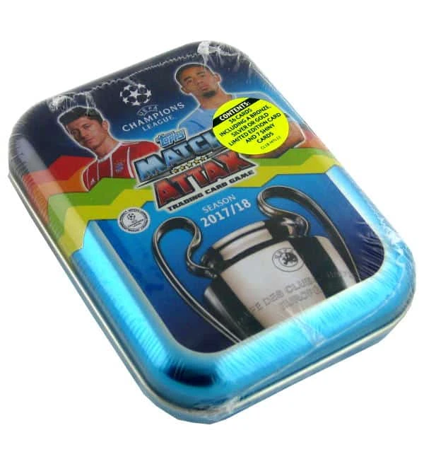 Pocket Tin (zufälliges Motiv) der Topps Champions League Match Attax 2017 / 2018 Trading Cards Serie mit 35 Karten + 1 Limited Edition Card, mit folgender Verteilung: