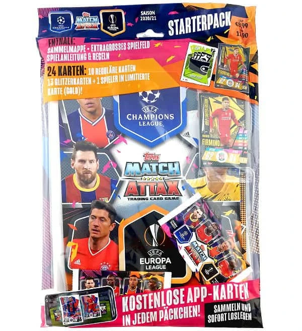Starterpack zur Topps Champions League 2020/21 Match Attax Trading Card Serie mit folgendem Inhalt: