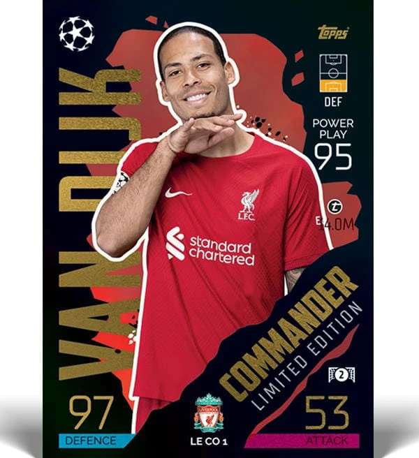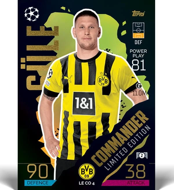 Mega Tin COMMANDERS der Topps Champions League Match Attax 2022/23 Trading Cards Serie. Jede Mega Tin enthält 66 Karten + 4 exclusive Master Limited Edition cards: