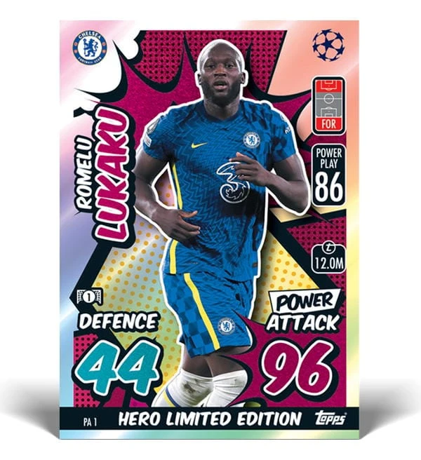 Tin Set mit 2 Mega Tins der Topps Champions League Match Attax EXTRA 2021/22 Trading Cards Serie. Jede Mega Tin enthält 66 Karten + 3 Exclusive Power Cards + 1 exklusive Power Hero Squad Limited Edition Card. Diese 2 Motive sind enthalten: